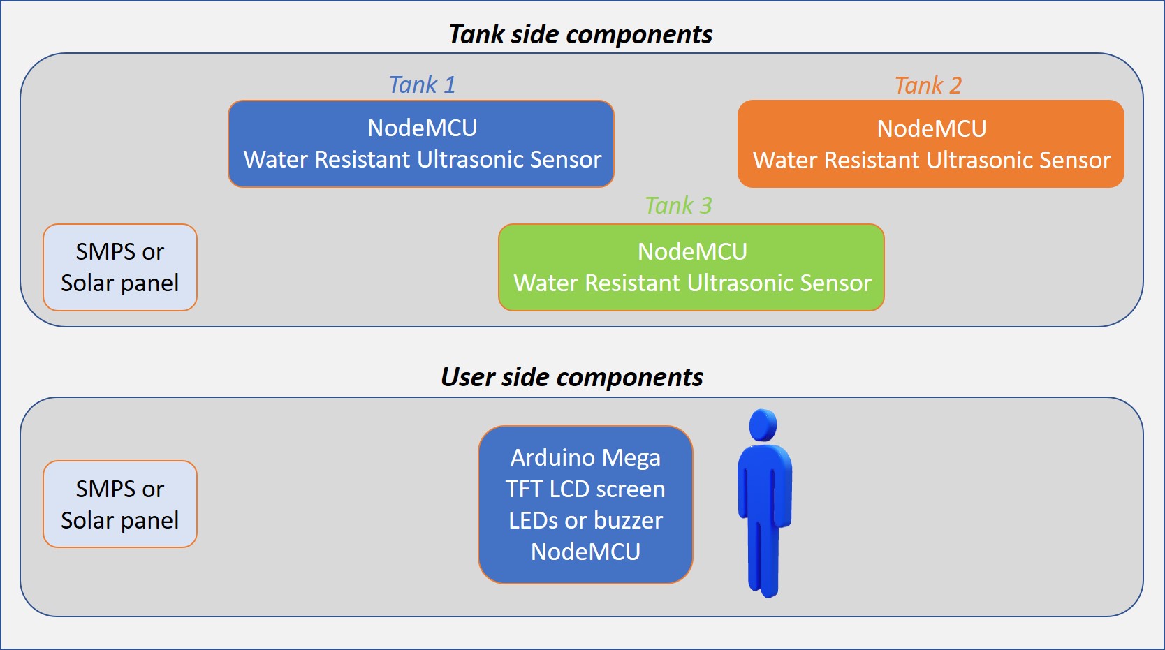 - The approach shown in Figure 1 proposes SMPS, or solar, as a power supply for both the tank side and the user side.