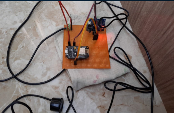 - Two NodeMCUs are used for uploading and receiving data. An Arduino and LCD display are used on the user side for receiving water levels and displaying them.